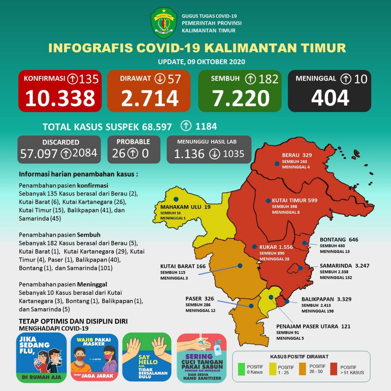Update 9 Oktober 2020 : Bertambah 135 Kasus Positif Covid-19 di Kaltim, 10 Kasus Meninggal