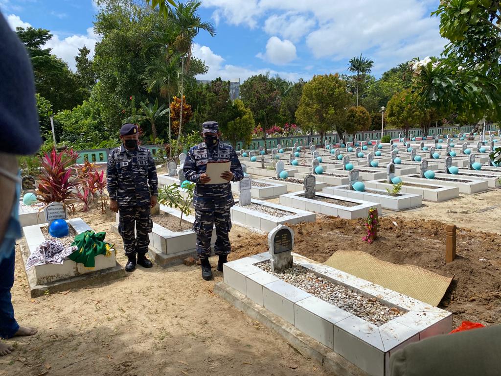 Pasops Lanal Balikpapan Mayor Laut (P) Syaiful Ali bertindak sebagai Inspektur Upacara. Upacara Pemakaman kali ini tidak seperti biasanya. Karena dilakukan dengan menerapkan protokol kesehatan yang ketat
