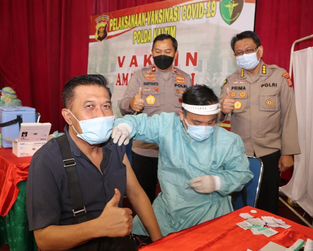 “Kita harus percaya terhadap pemerintah dan dokter yang menyuntikkan vaksin ini untuk menghasilkan yang terbaik, meningkatkan daya tahan tubuh sehingga tidak mudah terinfeksi Covid-19,” kata Wakapolda Kaltim.