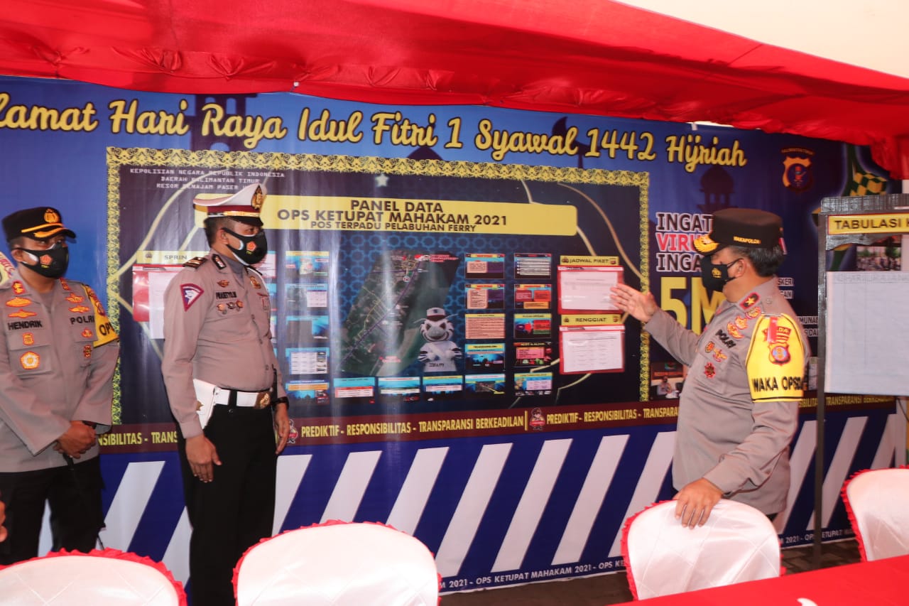 Guna memastikan kelancaran proses pengamanan dan pelayanan oleh personel Polda Kaltim, Wakapolda Kaltim Brigjen Pol Drs. Hariyanto, S.H., M.Hum., menyambangi Pos Pam Idul Fitri 2021 di wilayah Polres PPU, Sabtu (8/5/2021).