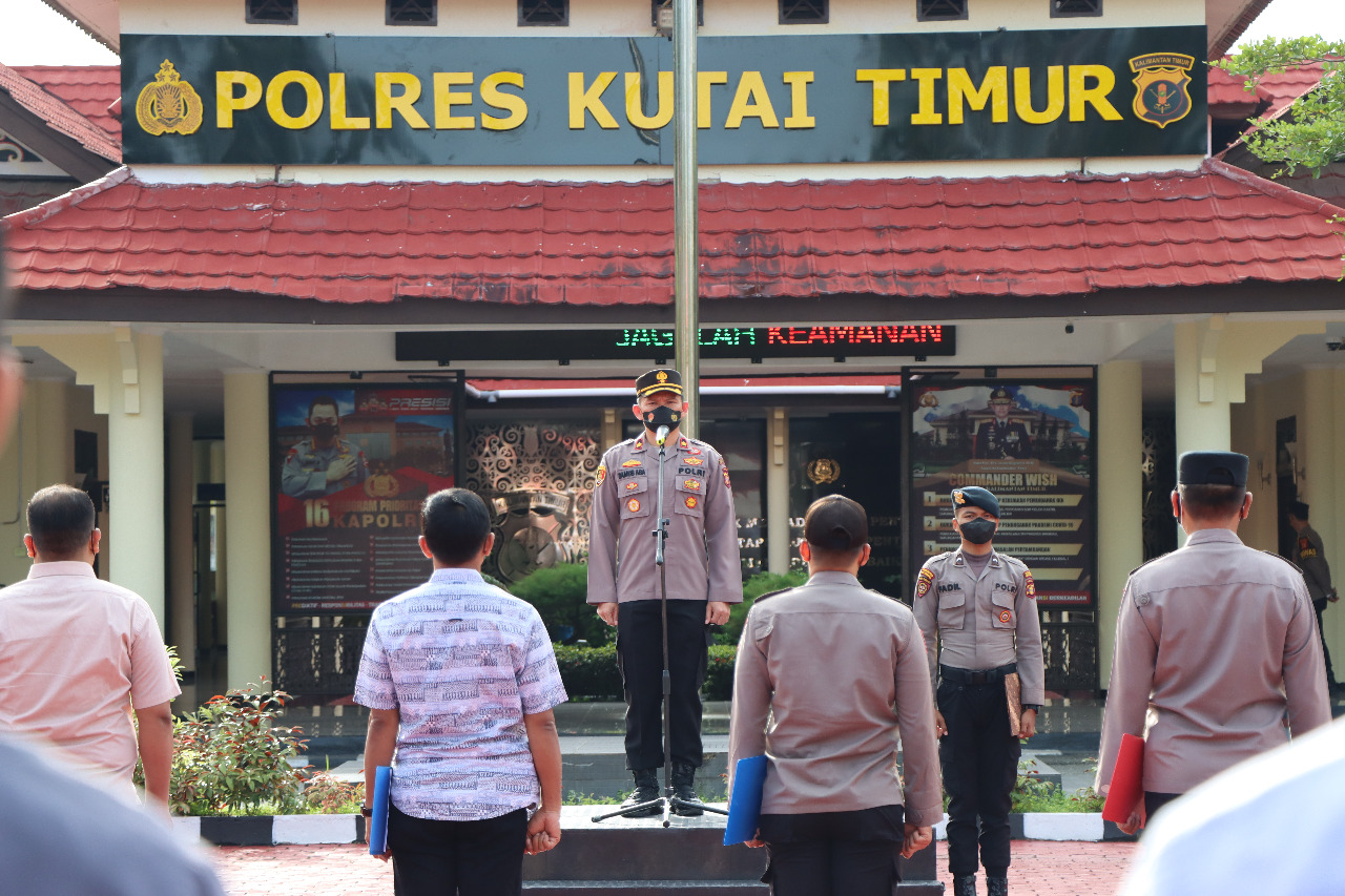 Dengan dipimpin langsung apel pagi tersebut oleh Wakapolres Kutim Kompol Damus Asa dihadiri para Kabag, Kasat serta para pejabat utama polres dan personel Polres Kutim.