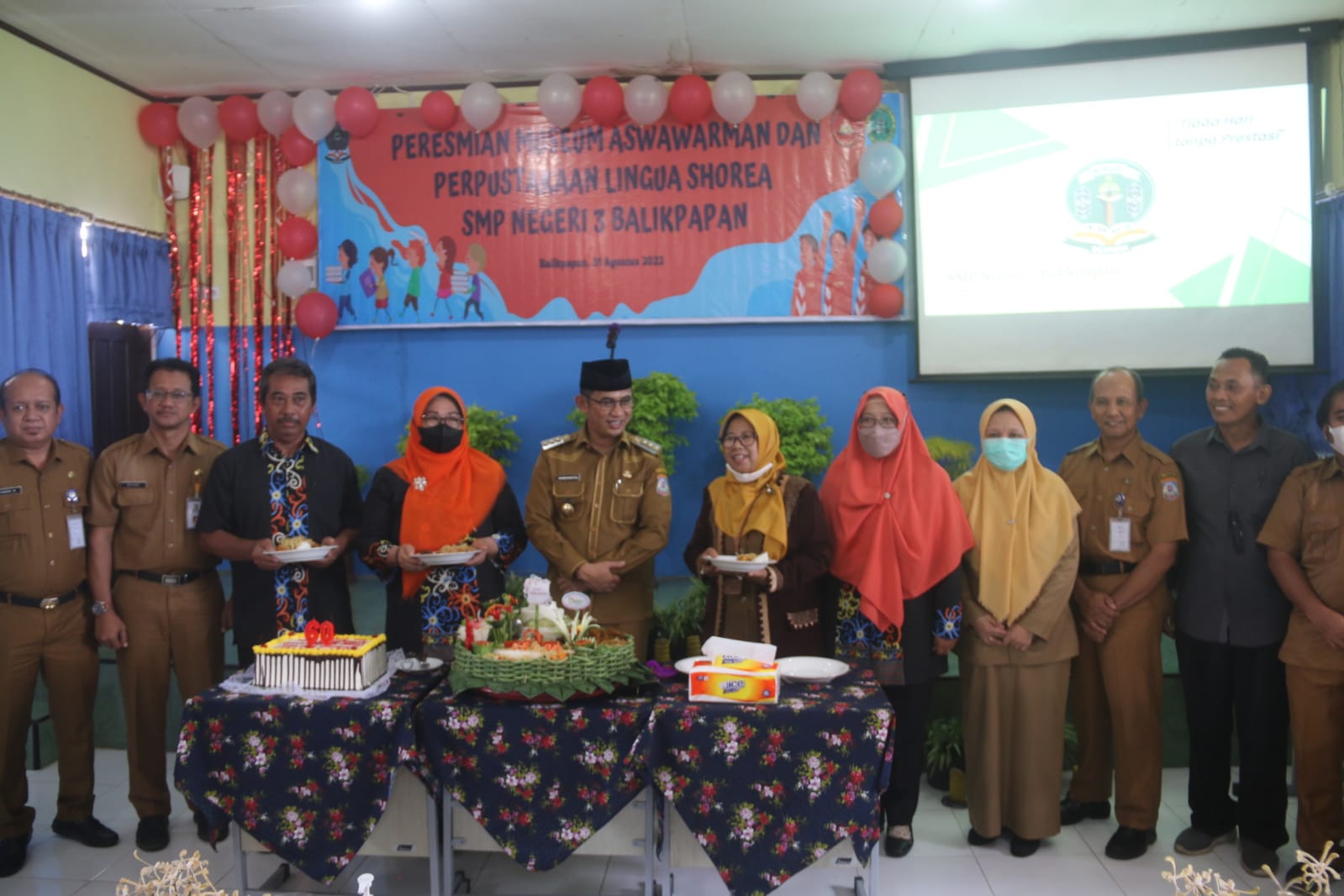“Terima kasih kepada semua yang mendukung SMP 3 Balikpapan menambah fasilitas sekolah, sehingga hari ini bisa bersama-sama meresmikan perpusataakan Lingua Shorea yang berakreditasi dan musem pramuka Aswawarman yang satu- satunya di Balikpapan,” ujar Eni.