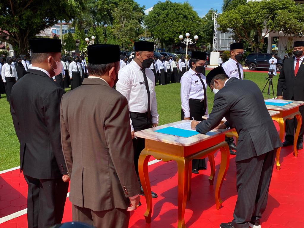 Sebanyak 127 orang P3K formasi guru resmi di lantik oleh Wali Kota Balikpapan Rahmad Mas’ud, di halaman Kantor Walikota Balikpapan, Kamis (28/4/2022).