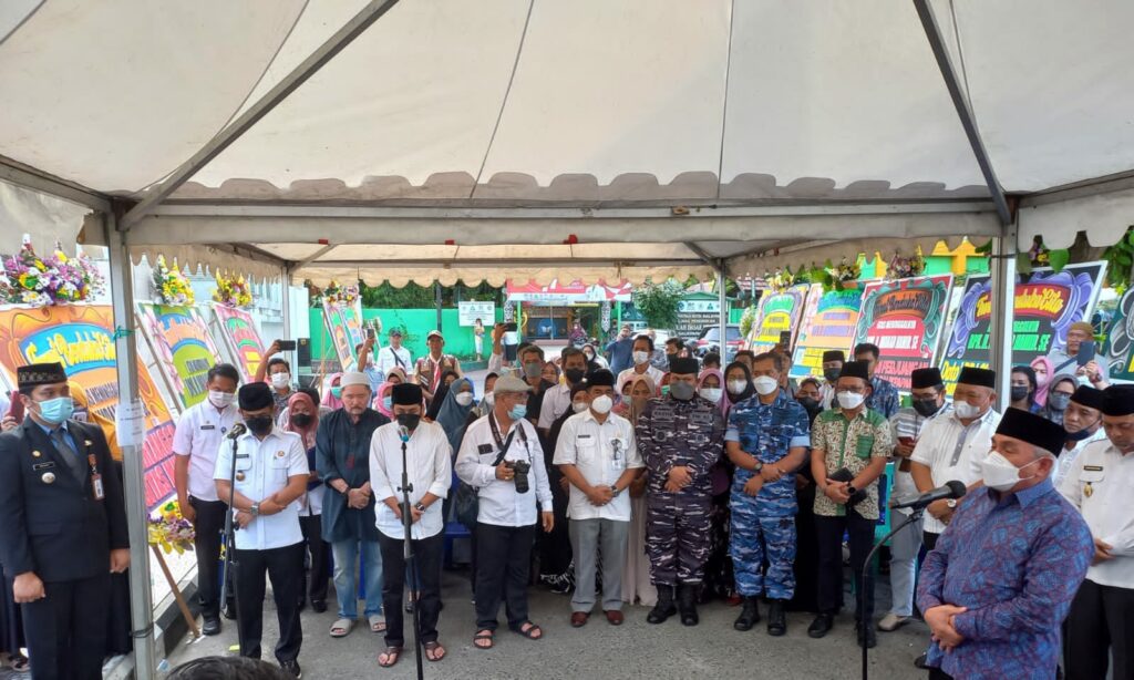 BALIKPAPAN,Inibalikpapan.com – Setelah disemayamkan sebentar di rumah duka, jenazah mantan Wali Walikota Balikpapan Imdaad Hamid dilakukan prosesi pelepasan yang dipimpin langsung Gubernur Kaltim Isran Noor di rumah duka kawasan Jalan Wiluyo Puspoyudo, Rabu (3/8/2022).