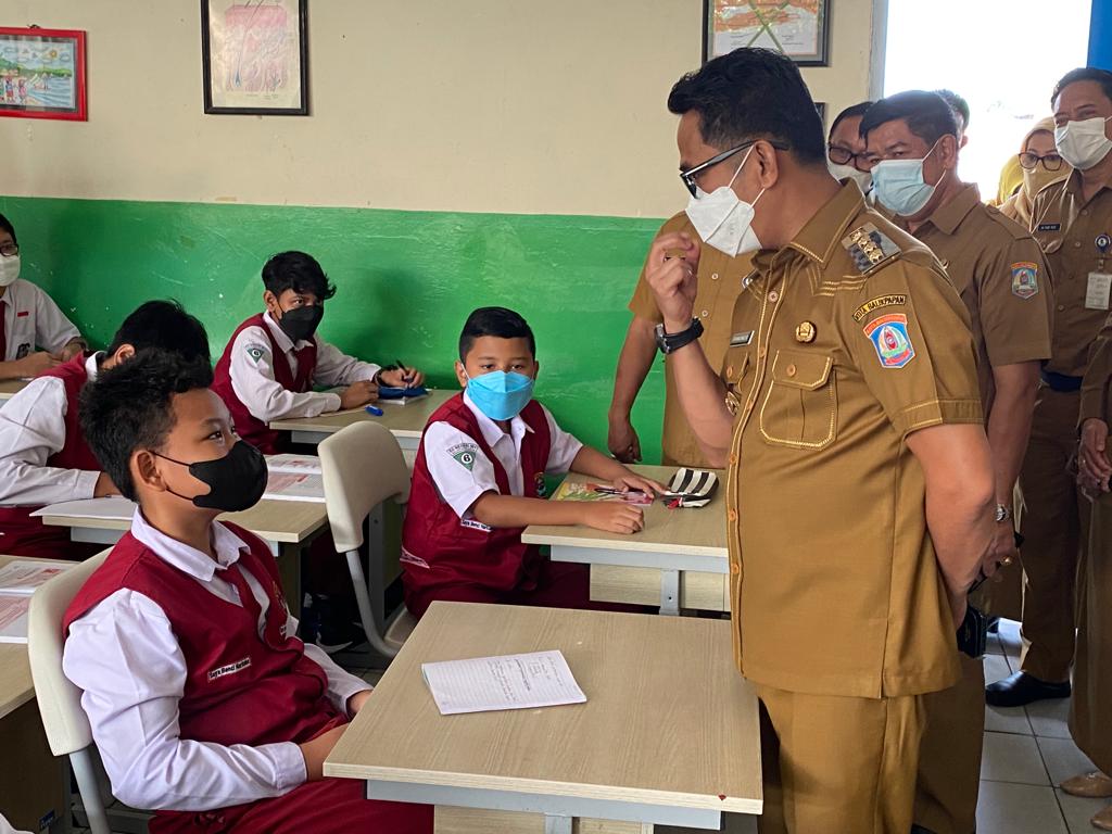 BALIKPAPAN, Inibalikpapan.com — Untuk memastikan pelaksanaan Pembelajaran Tatap Muka (PTM) 100 persen di Kota Balikpapan berjalan lancar, Wali Kota Balikpapan Rahmad Mas’ud didampingi sejumlah Asisten, Kepala Dinas Pendidikan dan Kebudayaan, Kepala Dinas Kesehatan Kota Balikpapan meninjau PTM dibeberapa sekolah, Selasa (11/1/2022).