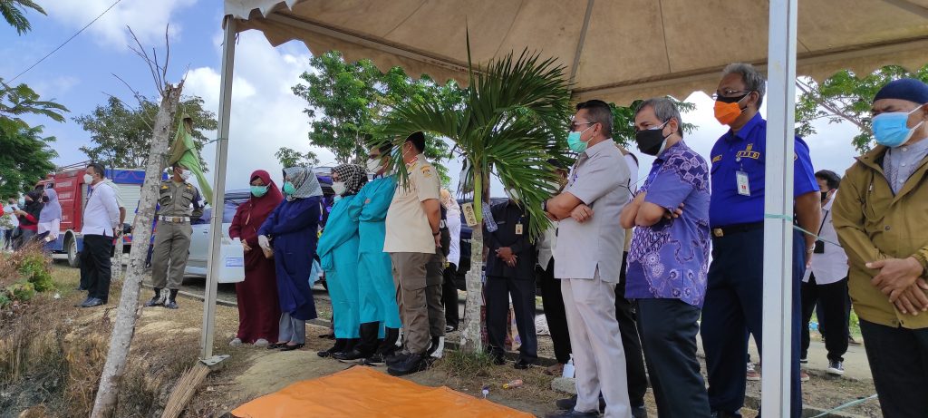 Rahmad bersama istri yang mengenakan baju APD ikut serta mengantar bersama rombongan ke pemakaman km 15. Tepat pukul 11.05 jenazah dimakamkan di area baru yang sudah dibuka oleh Dinas Pemukim dan Perumahan Kota Balikpapan.