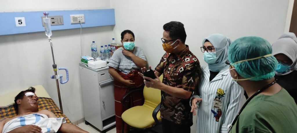 Wali Kota dan istri saat menjenguk didampingi Kepala DKK dr Andi Sri Juliarti, Dirut RSUD dr Cokorda Ratih, dan plt Kadis Kominfo Farid, dan menyusul Kepala Dishub Elvin Junaedi.