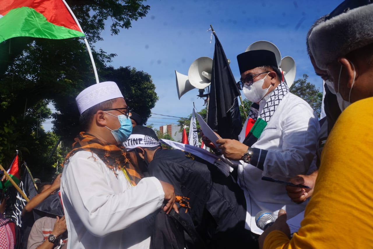 “Ketiga kita ikut membantu saudara kita Palestina dengan cara mengumpulkan bantuan dukungan baik doa maupun bantuan dukungan keuangan dan berbagai hal untuk membantu saudara kita di Palestina,” ujarnya