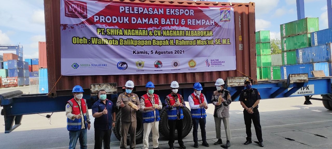 BALIKPAPAN, Inibalikpapan.com — Potensi ekspor di Kota Balikpapan cukup menjanjikan, hal inilah yang lakukan PT Shifa Naghari dan CV Naghari Al Barokah dengan melakukan ekspor damar batu dan rempah-rempah keluar negeri, Kamis (5/8/2021).