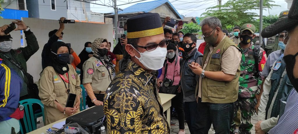 Pada kesempatan itu, Rahmad terus mengingat warga dan petugas posko untuk tetap mengerapkan prokes. ” Maskernya tetap dipakai ya pak, ” pesan wali kota saat menyerahkan bantuan.