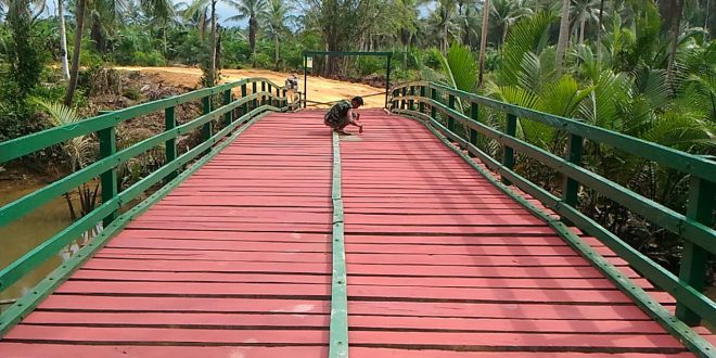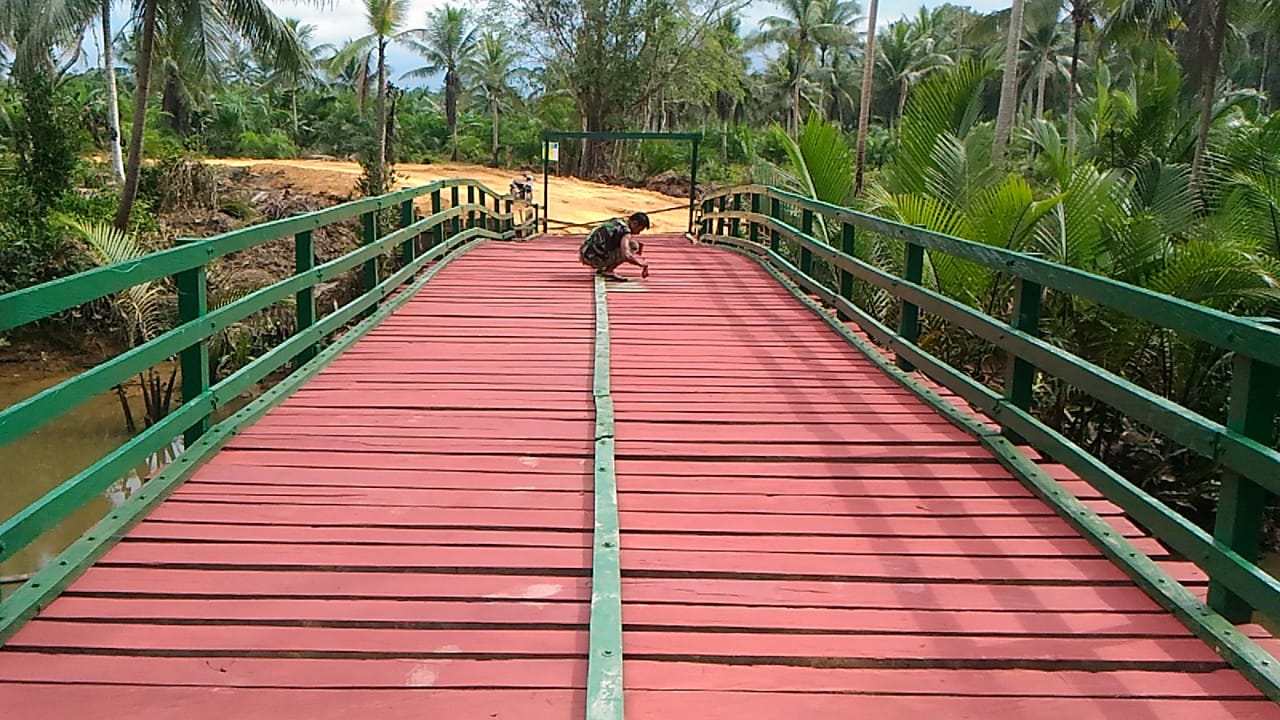SEPAKU, Inibalikpapan.com – Jembatan penghubung Desa Argomulyo dan Desa Tengin Baru saat ini sudah dapat digunakan, dan ini menjadi hadiah untuk warga dari kegiatan TNI Manunggal Membangun Desa (TMMD) Reguler ke 104. Pasalnya, jembatan tersebut kini tinggal dipercantik yang melibatkan 15 anggota TNI dengan dibantu masyarakat setempat.