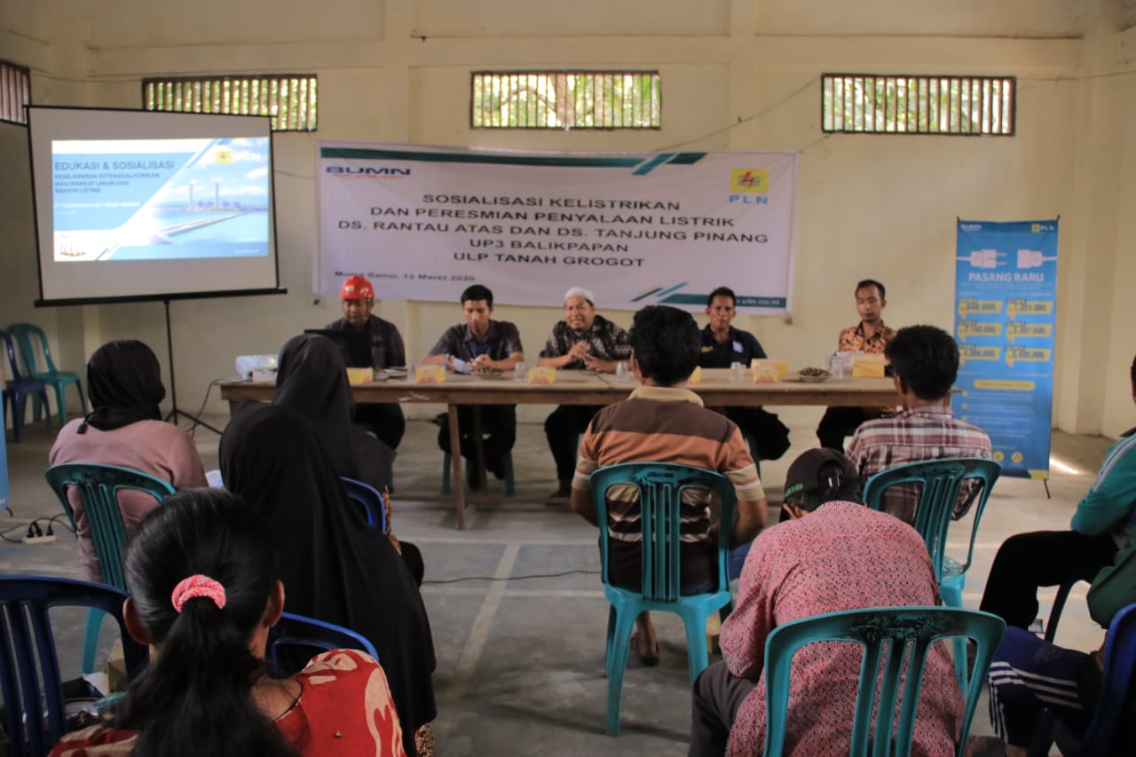 Kamis (12/03), bertempat di Gedung Serbaguna Manti Jaya Desa Rantau, PLN Unit Layanan Pelanggan (ULP) Tana Grogot melakukan simbolisasi penyalaan listrik desa. Terlihat antusiasme warga dari dua desa berbondong-bondong datang untuk mengikuti sosialisasi.