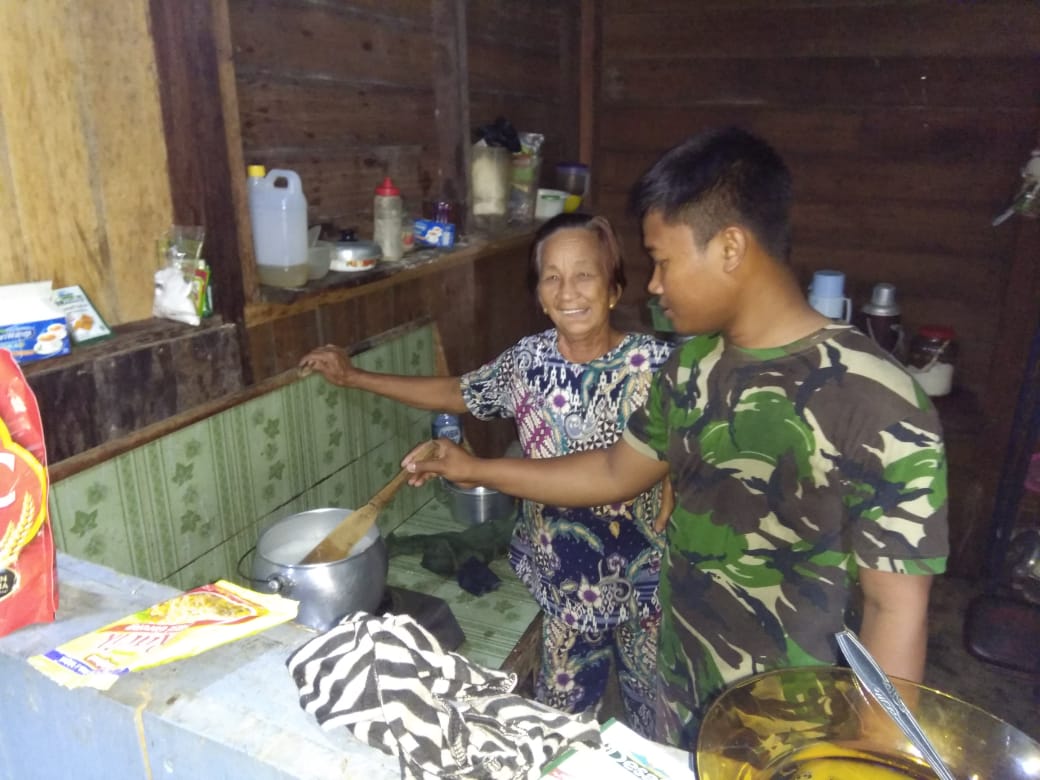 Ketika usai bekerja di lapangan lokasi TMMD, orangtua dan anak-anak bercengkerama dengan prajurit Satgas TMMD. Kelihatan prajurit Satgas pun tidak canggung-canggung membantu tuan rumah, yang ditinggali memasak sayur atau menggoreng ikan, tahu dan tempe sebagai lauk makan malam. Suasana keakraban pun nampak jelas. Semua seperti keluarga.