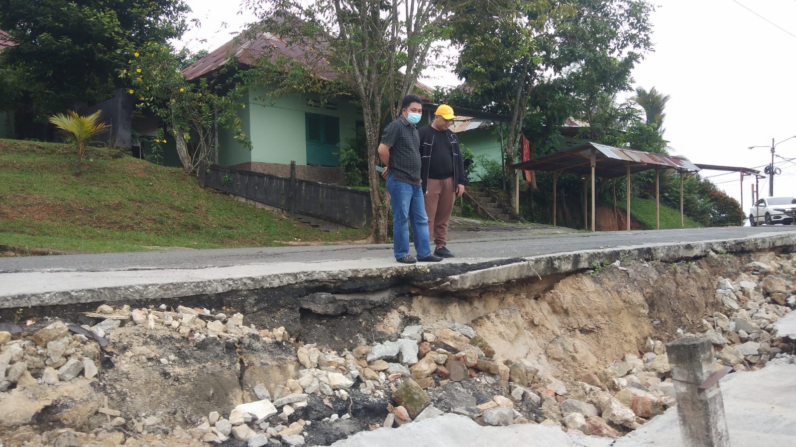“Kami melihat kontur tanah yang begitu rawan sehingga diperkirakan jika curah hujan deras dalam bebeapa jam tidak menututp kemungkinan tanaha ini akan turun kebawah atau longsor,” ujarnya, Minggu (16/01/2022)