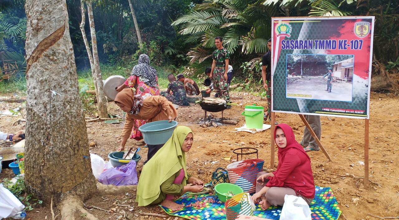 Warga Sungai Jaranih Semangat Memasak Untuk Satgas TMMD