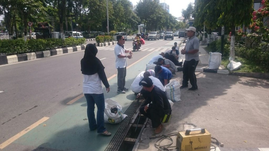 Dalam pembersihan tali air yang dilakukan Dinas PU dari bidang SDA dan drainase menerjunkan 22 personil dan sejumlah petugas las. Tali air yang ada sengaja ditutup besi-besi jeruji agar kelihatan lebih rapi.