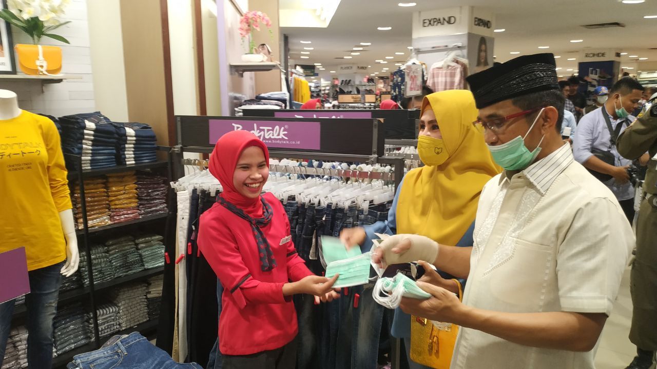Pembagian masker ini setidaknya 50 dus berisi masing-masing 50 masker di bagikan kepada masyarakat pengunjung mall.