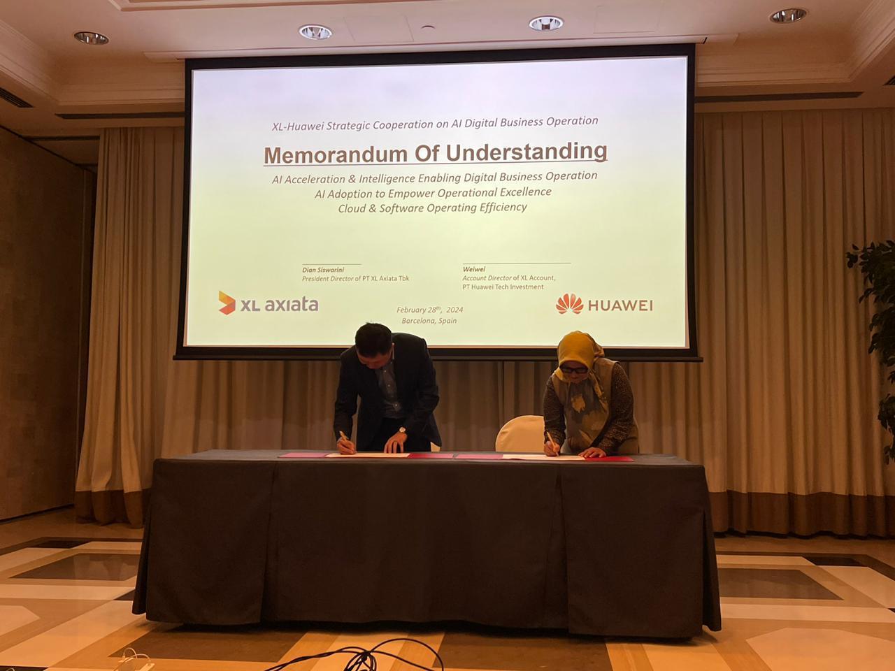 BARCELONA,Inibalikpapan.com – XL dan Huawei Axiata telah menandatangani sebuah Nota Kesepahaman, untuk menjalin kerjasama yang berfokus pada bisnis digital berbasis Artificial Intelligence (AI).