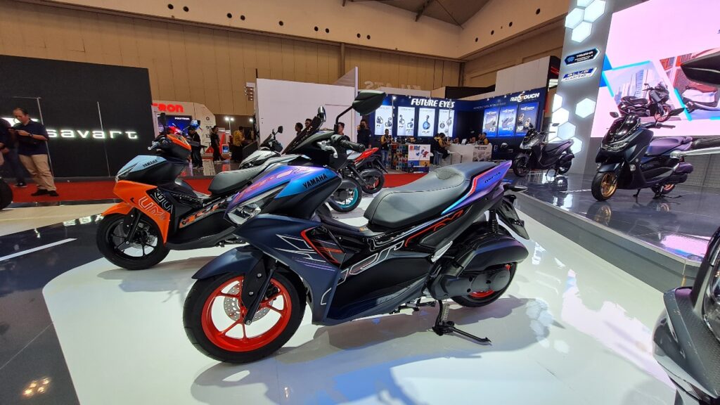 PT Yamaha Indonesia Motor Mfg. (YIMM) secara resmi meluncurkan Aerox 155 dengan varian warna dan grafis baru pada hari pembukaan Indonesia Motorcycle Show Plus (IMOS+) 2023, di ICE BSD City, Tangerang, pada Rabu (25/10/2023).