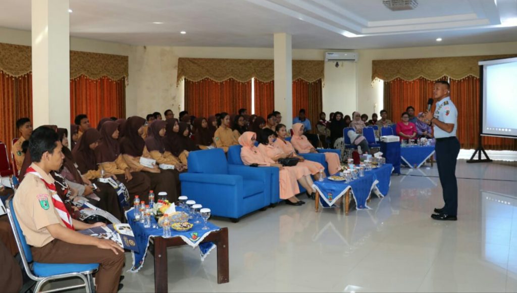 Pelajar Balikpapan mendapatkan sosialisasi mengenai SMA Pradita Dirgantara dari Kadispers Lanud Dhomber Mayor Adm Yogie Azhar.