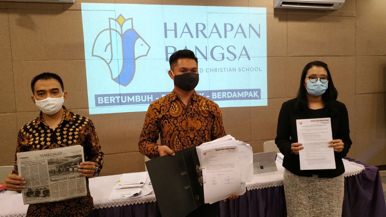 “Langkah hukum kami hadapi sesuai peraturan yang ada. Mereka gugat akan kami hadapi. Kita patuh dan tunduk pada paturan yang ada,” tandas Pengacara Yayasan Tunas Cahaya Bangsa Robert Andarias dalam penjelasan resmi bersama Ketua Harian Harapan Bangsa Jimmy Utomo dan Bendahara Harapan Bangsa, Widya, di Jalan Indra Kila, Selasa siang (7/7/2020).