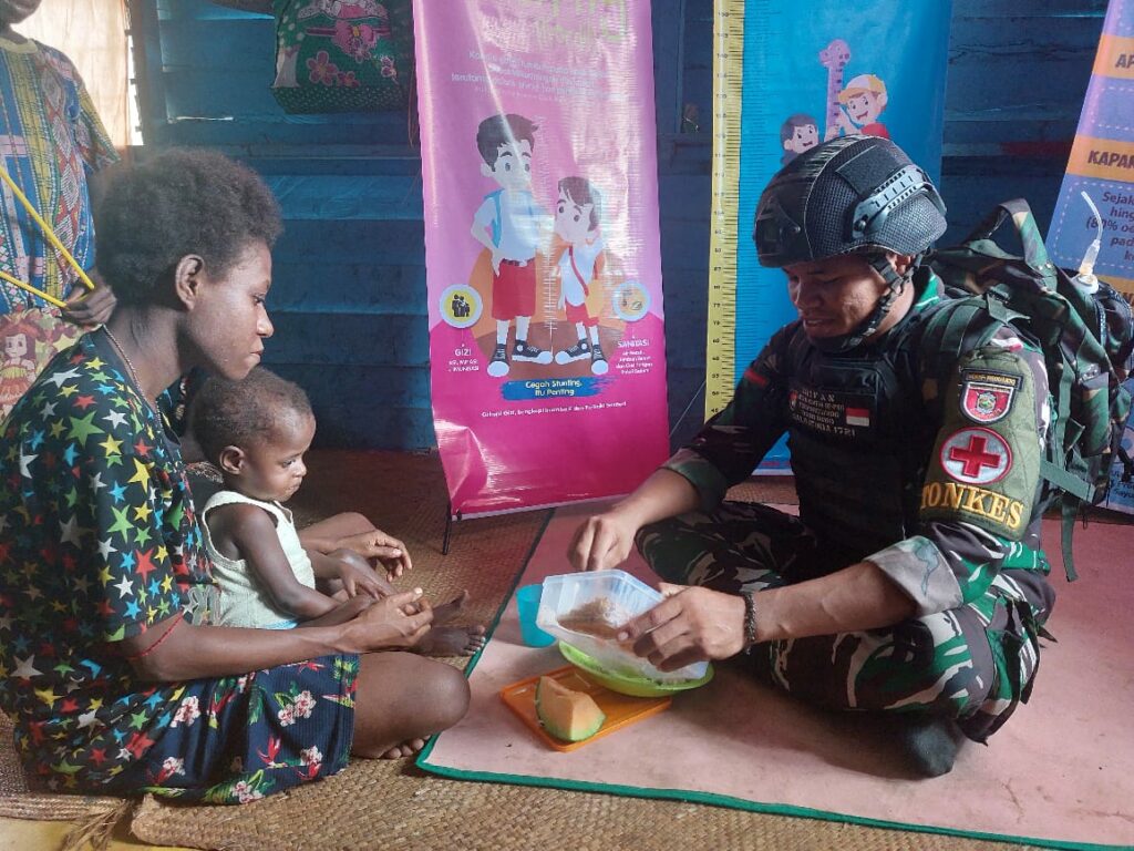 Yonif Raider 600 Modang Kodam VI Mulawarman Bantu Penanganan Stunting Warga di Distrik Kimaam